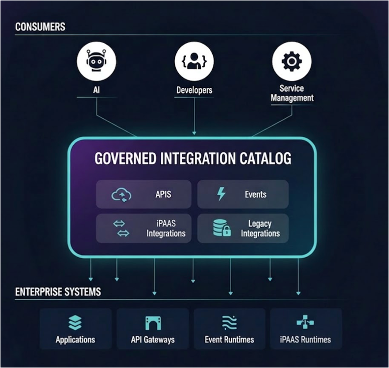 - Keep your system of record active and in-sync via connectors to your repos, integration platforms, and API gateways